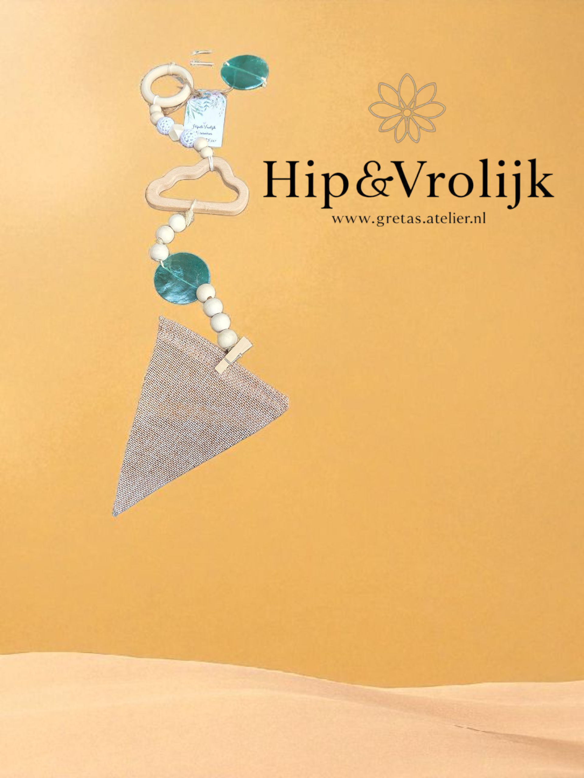 Deze unieke decoratie is met veel liefde samengesteld uit bestaande accessoires en heeft zo een tweede leven gekregen. De slinger is versierd met houten kralen en een schitterende capiz schelp, gecombineerd met touw van 100% katoen of stoer jute. Onderaan hangt een schattig wasknijpertje, perfect om een dierbare foto of een lief kaartje aan te bevestigen.