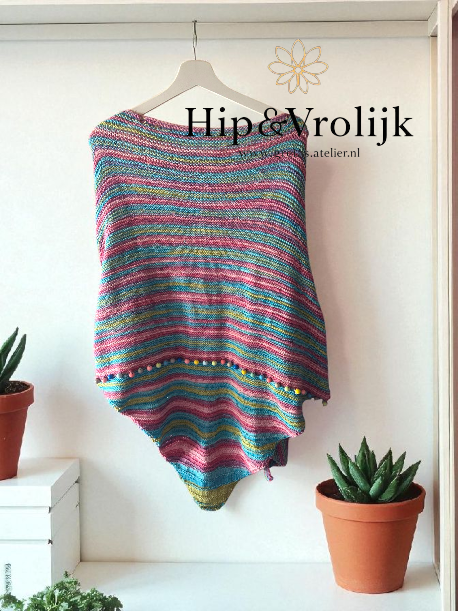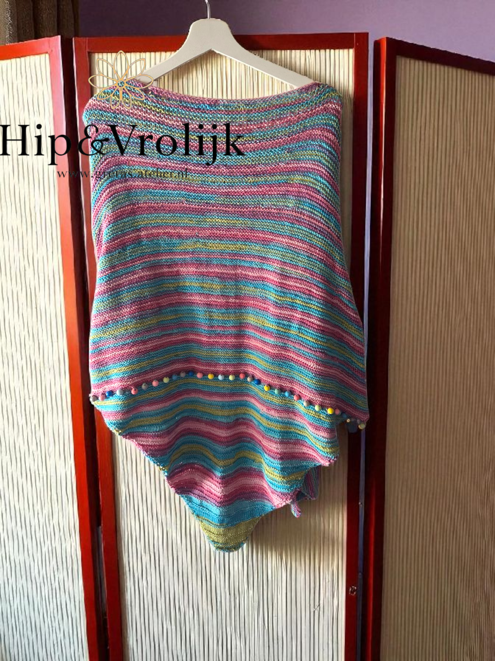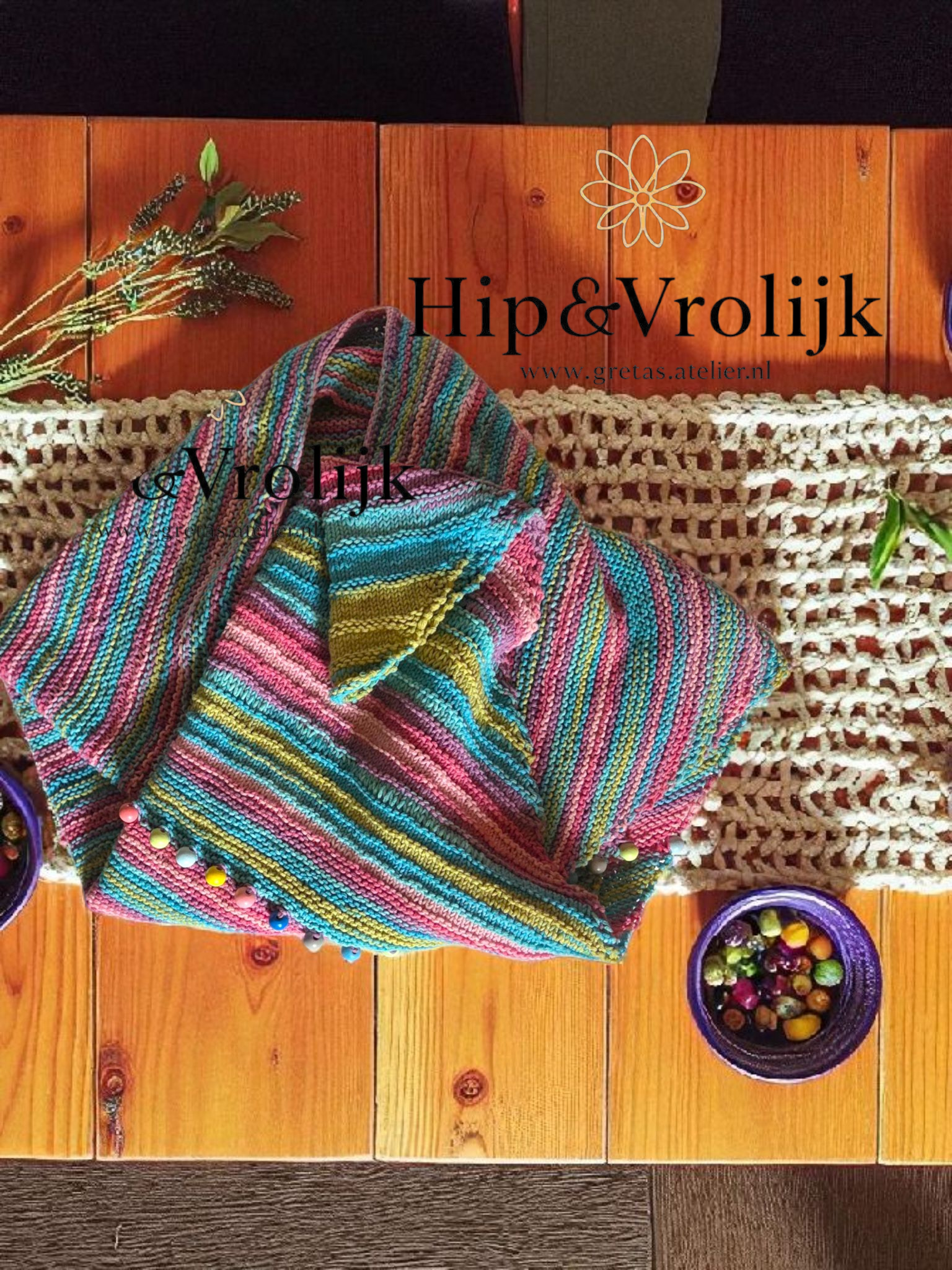 Deze zelfgebreide denimlook omslagsjaal is een echte eyecatcher! De vrolijk gekleurde acrylwol geeft warmte én kleur aan iedere outfit. De houten kralen zorgen voor een speels detail en maken de sjaal uniek. Perfect voor frisse dagen of als stijlvolle toevoeging aan je look.